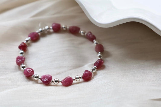 Pink Tourmaline Nugget Gemstone Bracelet | 925 Sterling Silver
