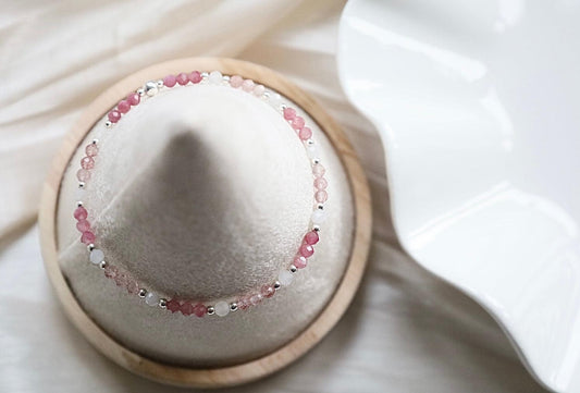 Pink tourmaline, Moonstone and Strawberry Quartz Mixed Gemstone Bracelet