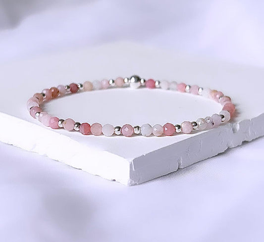 Pink Opal Gemstone Bracelet | 925 Sterling Silver