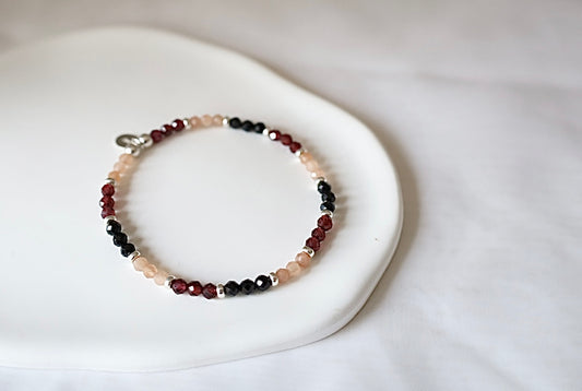 Garnet, Black Spinel and Sunstone Mixed Gemstone Bracele