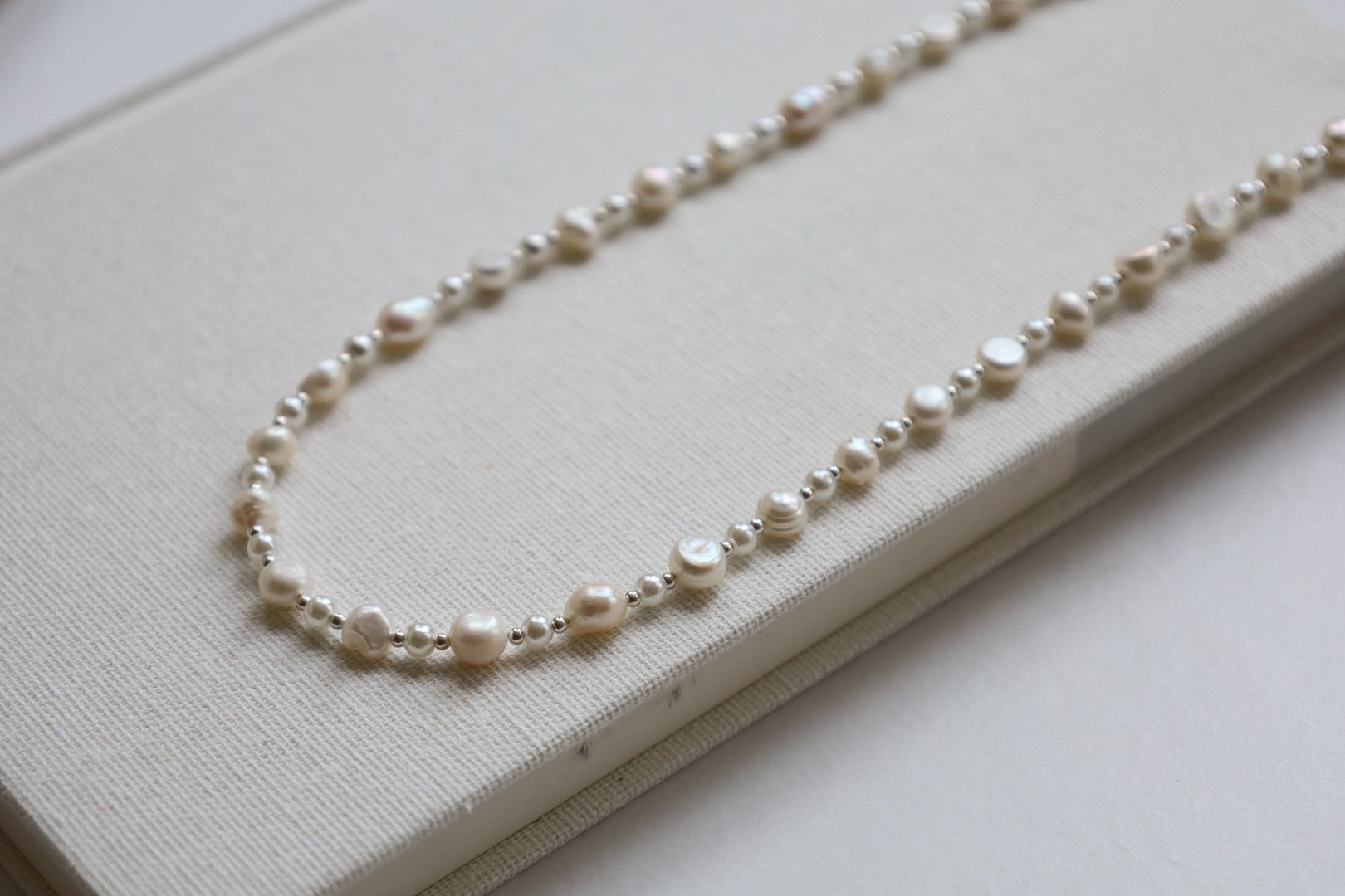 Radiating understated elegance, the Luna Pearl Necklace is a modern reimagining of the classic pearl choker. Hand-strung with a graceful sequence of freshwater pearls and delicate sterling silver beads, this piece embodies timeless beauty with a contemporary twist. Each pearl is naturally unique, its soft luster and organic form reflecting the serene glow of moonlight — the very inspiration behind its name. Complete the look with our matching bracelet.