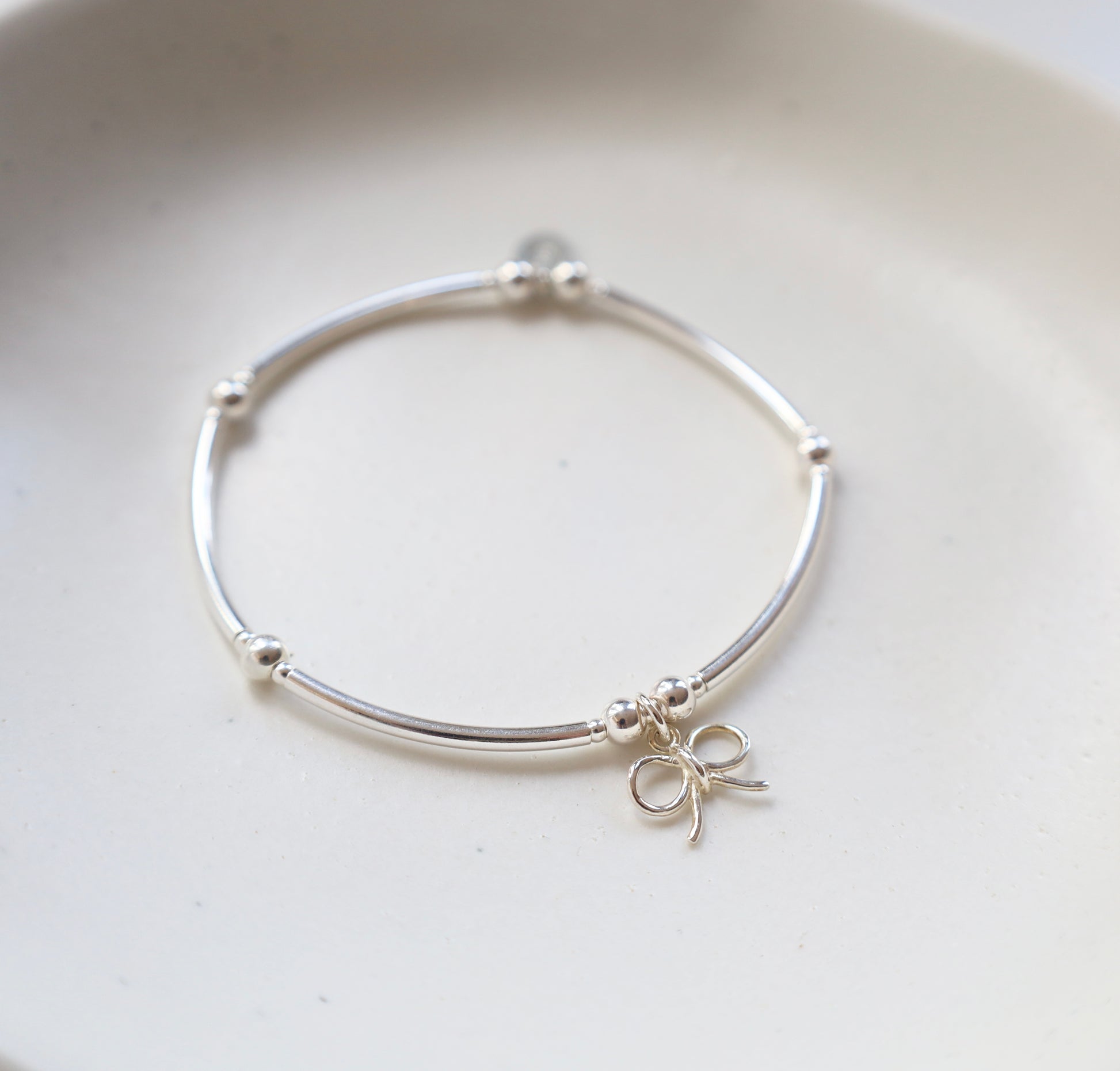 Dainty Bow Charm Bracelet. 925 Sterling Silver