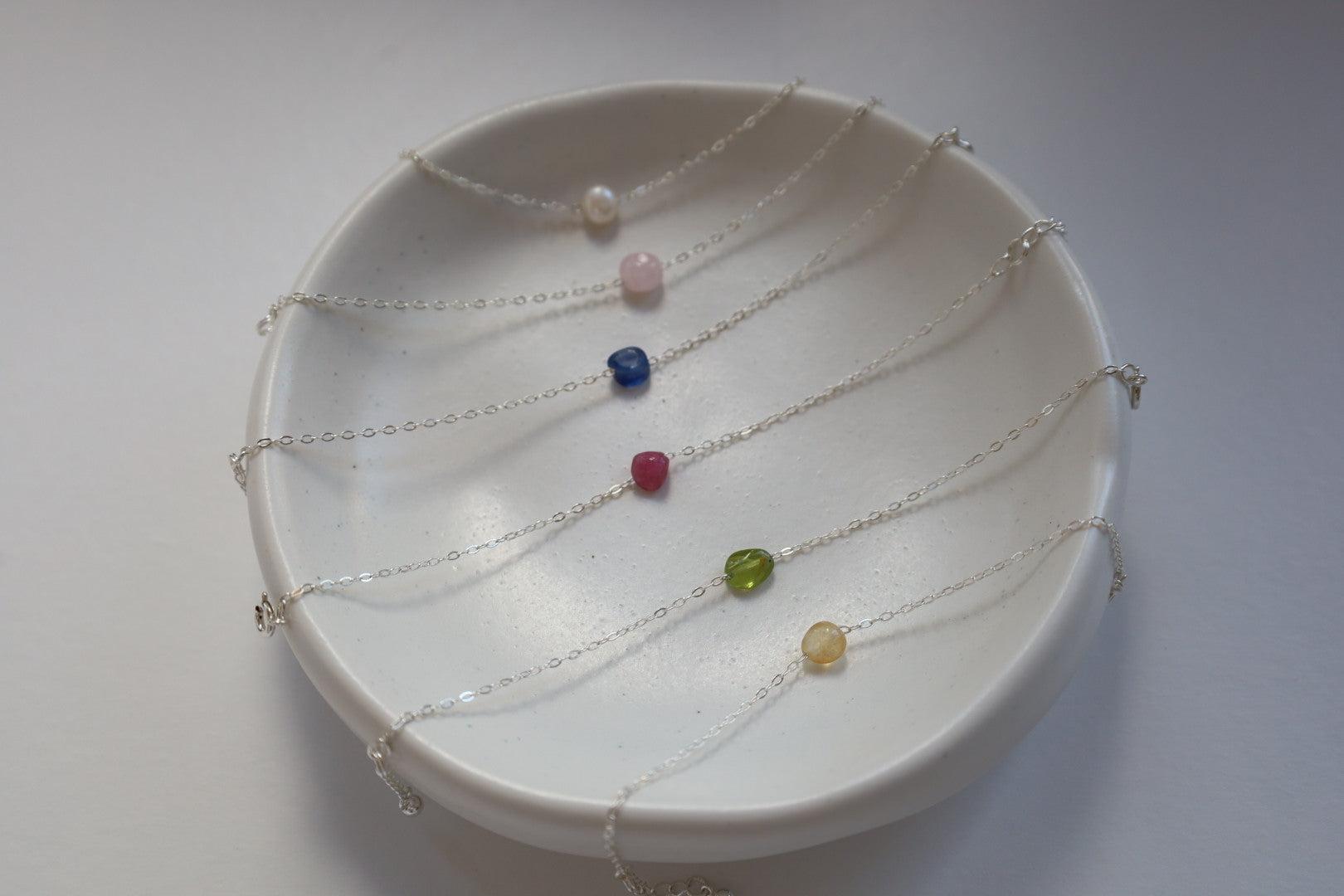 Delicate, lightweight and designed for everyday wear — each bracelet features a single ethically sourced gemstone on a fine chain, making it perfect for stacking or wearing alone.